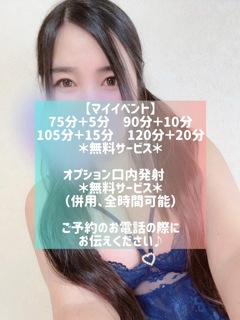 マイイベントは、 75分以上を選んでくれたお客様には、コースによって時間を無料でサービス致します。