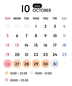 | 営業時間 | 10:00〜23:30 電話受付9:00~23:00 |