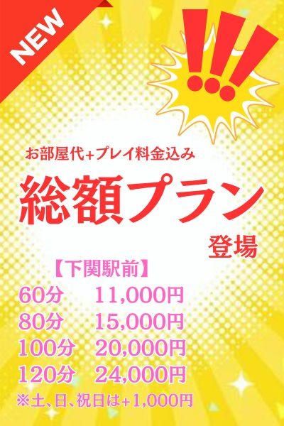 下関駅前エリア限定でご利用いただける、とってもお得な【総額プラン】が登場!