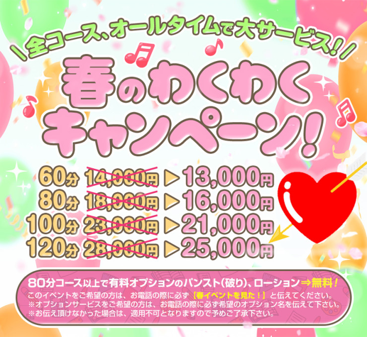 ※1、このイベントをご希望の方は、お電話の際に必ず【春イベントを見た!】と伝えて下さい。